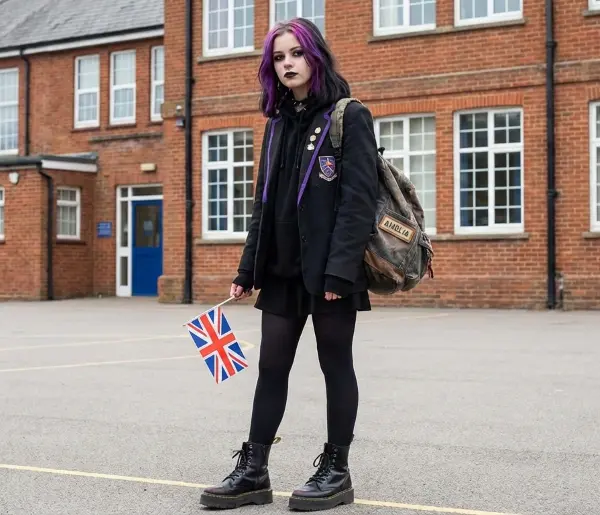 Amelia is presented as a fictional British schoolgirl, often shown with purple hair and gothic styling, appearing in short AI-generated videos and images. These posts typically show her walking through well-known London locations such as Parliament or busy streets while delivering nationalist and anti-immigration messages.