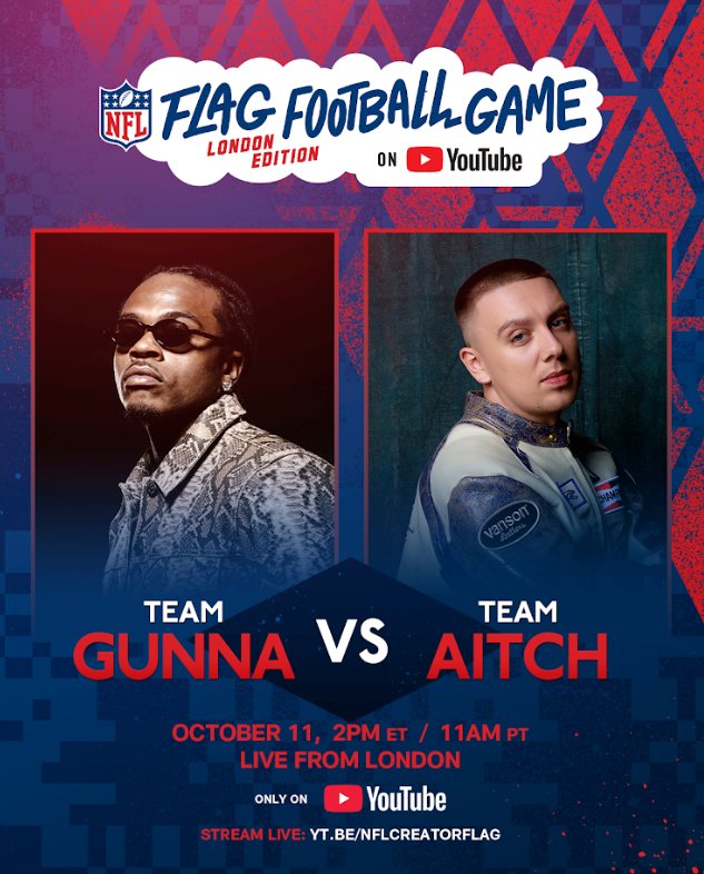 Ian Trombetta, NFL Senior Vice President of Social and Influencer Marketing, shared, “After the incredible response to our Creator Flag Football Game at Super Bowl LIX, we’re thrilled to bring that same mix of sport, music, and culture to London. With Aitch, Gunna, NFL icons, and YouTube stars all on one field, it’s a global celebration of the game and its growing community.”